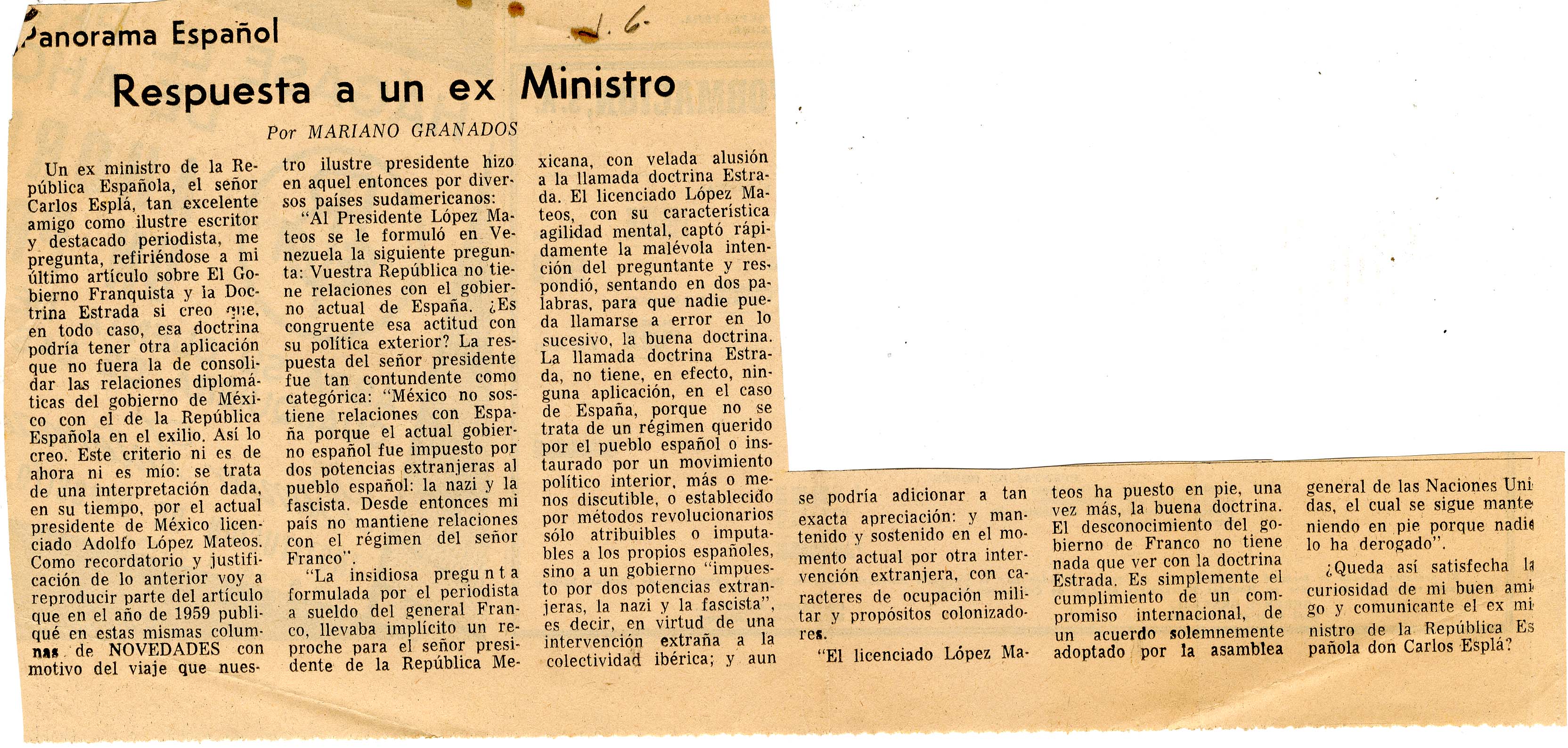 sd, GRANADOS, Mariano, "Panorama Español: Respuesta a un ex Ministro". |